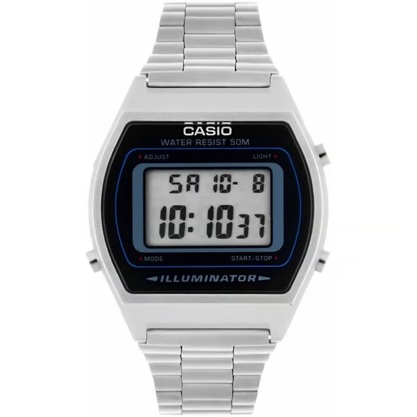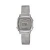 This Casio Sport women’s watch is made up of a steel bracelet, a 39mm oval steel case and a black digital dial. It is equipped with an alarm and a stopwatch.